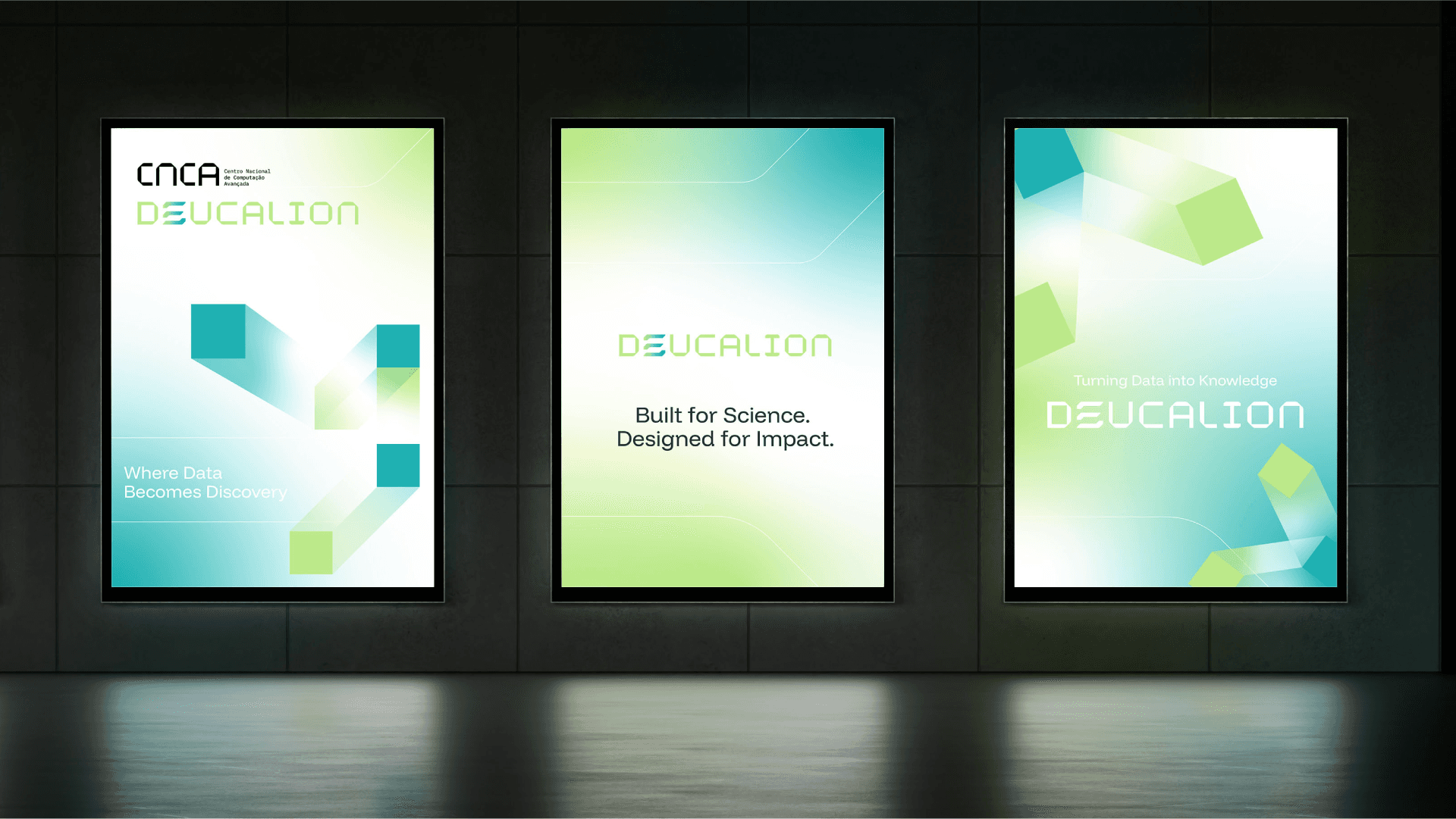 The Deucalion rebrand emerged from the need to convey the magnitude, intelligence, and responsibility of advanced computing. As Portugal’s national supercomputer, Deucalion supports scientific discovery and technological innovation at scale, standing as a key infrastructure where data, performance, and sustainability converge. The visual identity translates this purpose into a clear, contemporary system, precise, modular, and designed to communicate complex technology with clarity and confidence. Every line reimagined, every detail reconsidered, designed with intention, defined by progress, a symbol evolved yet true to its vision.
