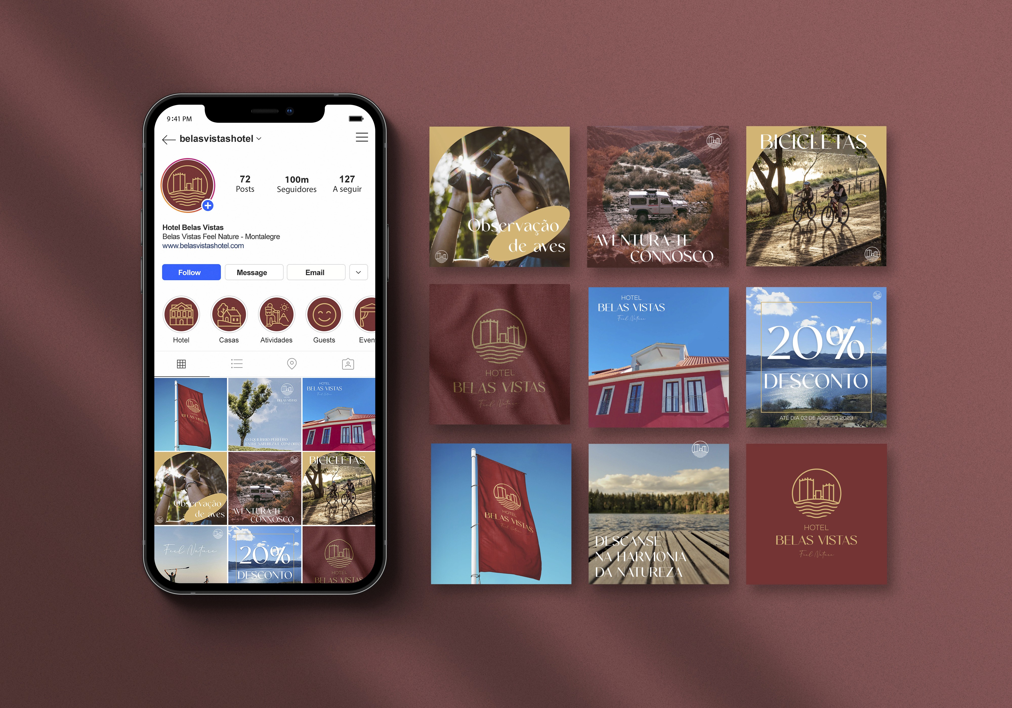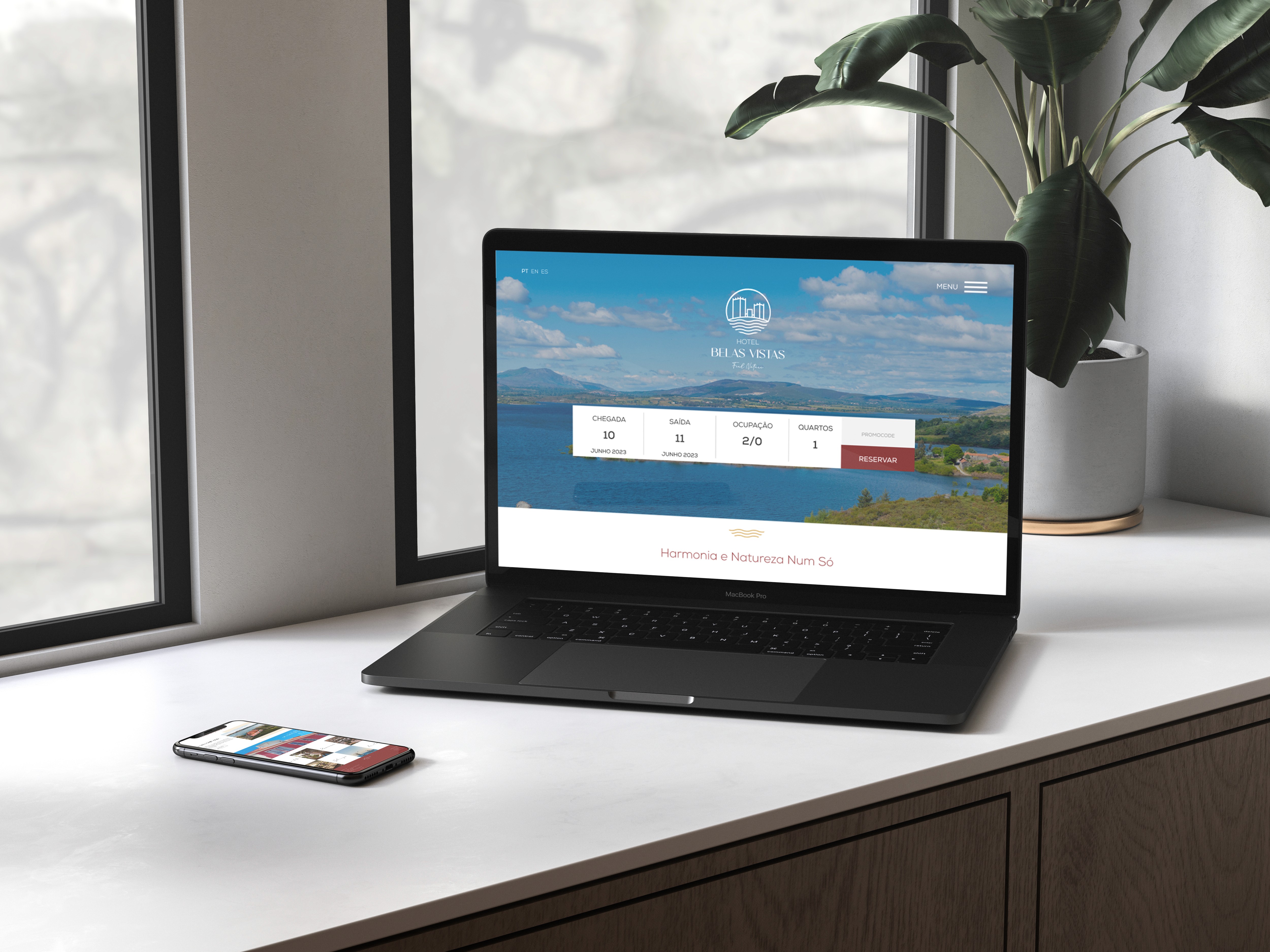 Belas Vistas Hotel offers nature focused accommodation with panoramic views over the Alto Rabagão reservoir in Montalegre, located in the heart of Peneda Gerês National Park. The rebranding reinforces its connection to the landscape through a clean, contemporary and nature driven visual identity.
